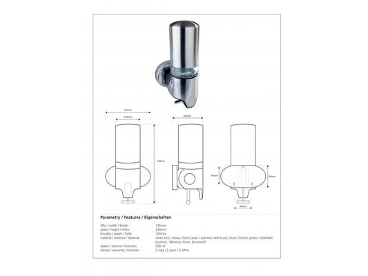 Dávkovač tekutého mýdla stříbrný matný, 300 ml