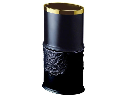 Pokojový koš, dvouplášťový, oválný, černá koženka/zlatý rám, 8 l