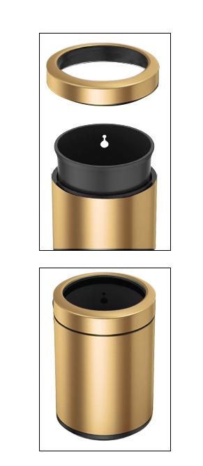 Pokojový koš, dvoustěnný, kulatý, zlatý, 6 l