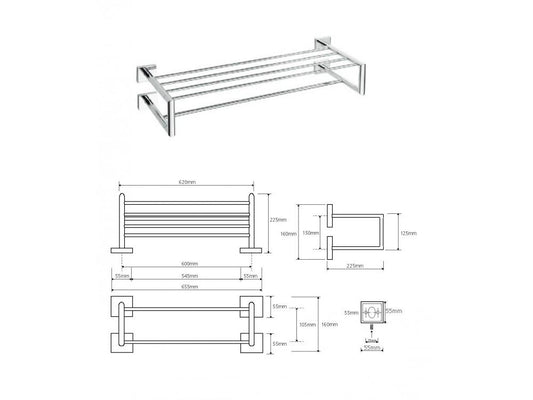 Dvojitý SQUARE držák na ručníky, 625 mm