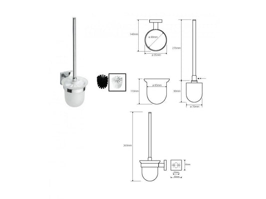 Design toilet brush, glass, white brush