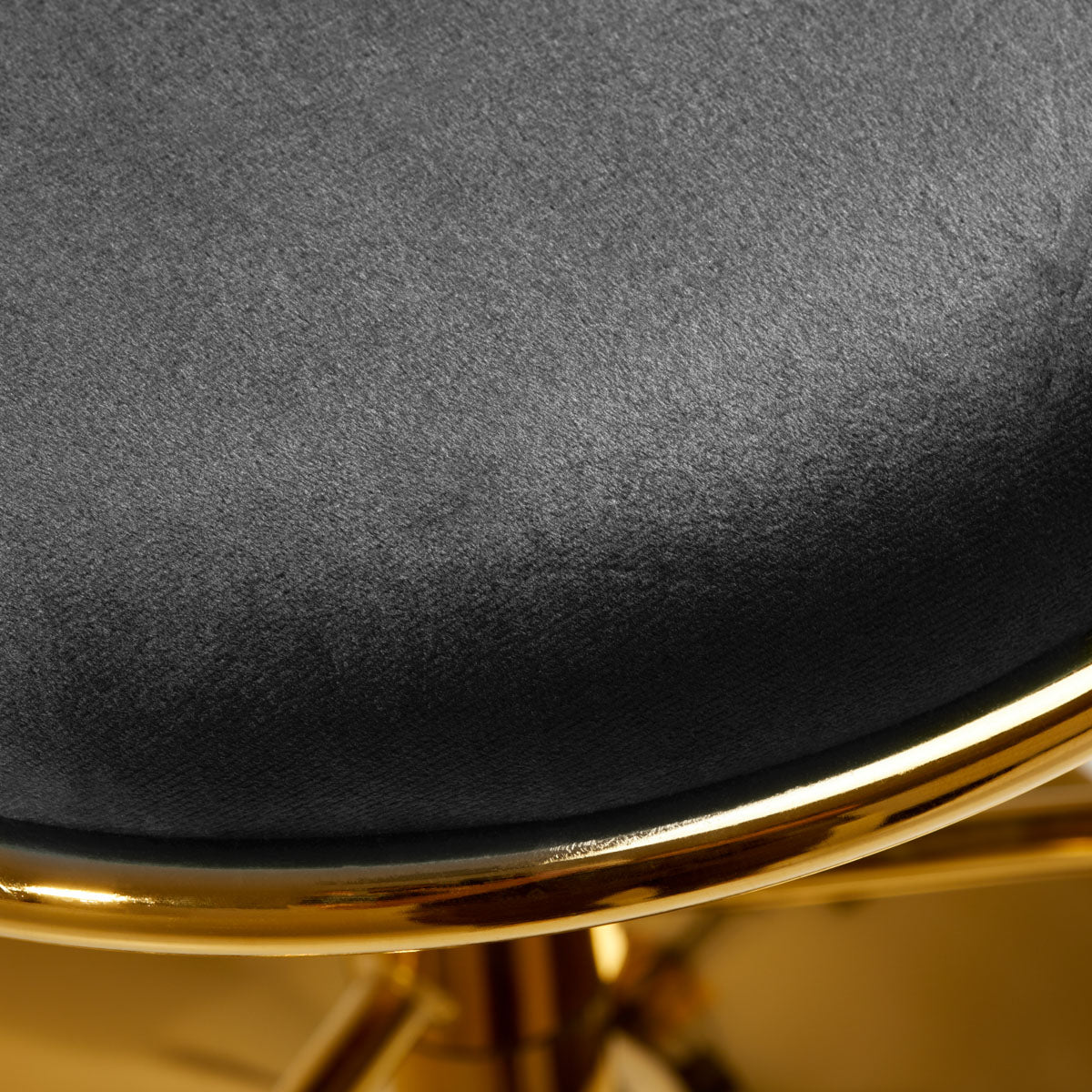 Pleasant-to-touch, velvet upholstery in shades of gray gives the stool a unique character, and aesthetically interwoven material on the backrest emphasizes the unique appearance of the furniture. The finish makes the furniture eye-catching. The frame in shades of gold adds elegance and prestige, perfectly matching the velvet.