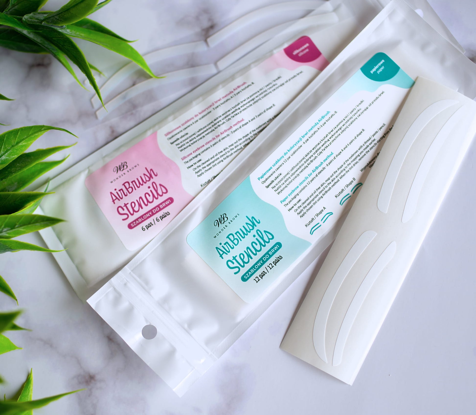 The package contains 12 pairs of stencils (6 pairs in shape A and 6 pairs in shape B). Each pair is designed for single use and ensures hygiene and comfort for your client. The paper pads have been designed to ensure comfortable application.