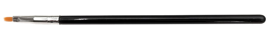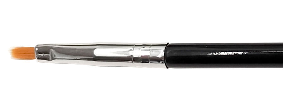 Specially profiled brush for dyeing short hair, such as eyebrows and eyelashes. Short synthetic fibers of the highest quality placed on a black wooden long handle.