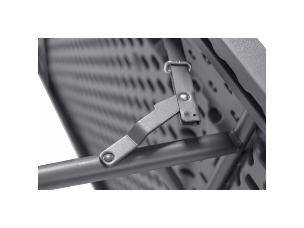 The WORKTOP TABLE banquet table is height adjustable in 4 positions. It is possible to connect it longitudinally with other tables. It also includes a manual lock and sliding ring to ensure greater table stability. Color: gray Dimensions (h x w x d): 740 x 1,830 x 730 mm Plate material: polyethylene Base: steel Weight: 17.00 kg Folding: yes Capacity for people: 6 people Load capacity: up to 270 kg Warranty: 10 years