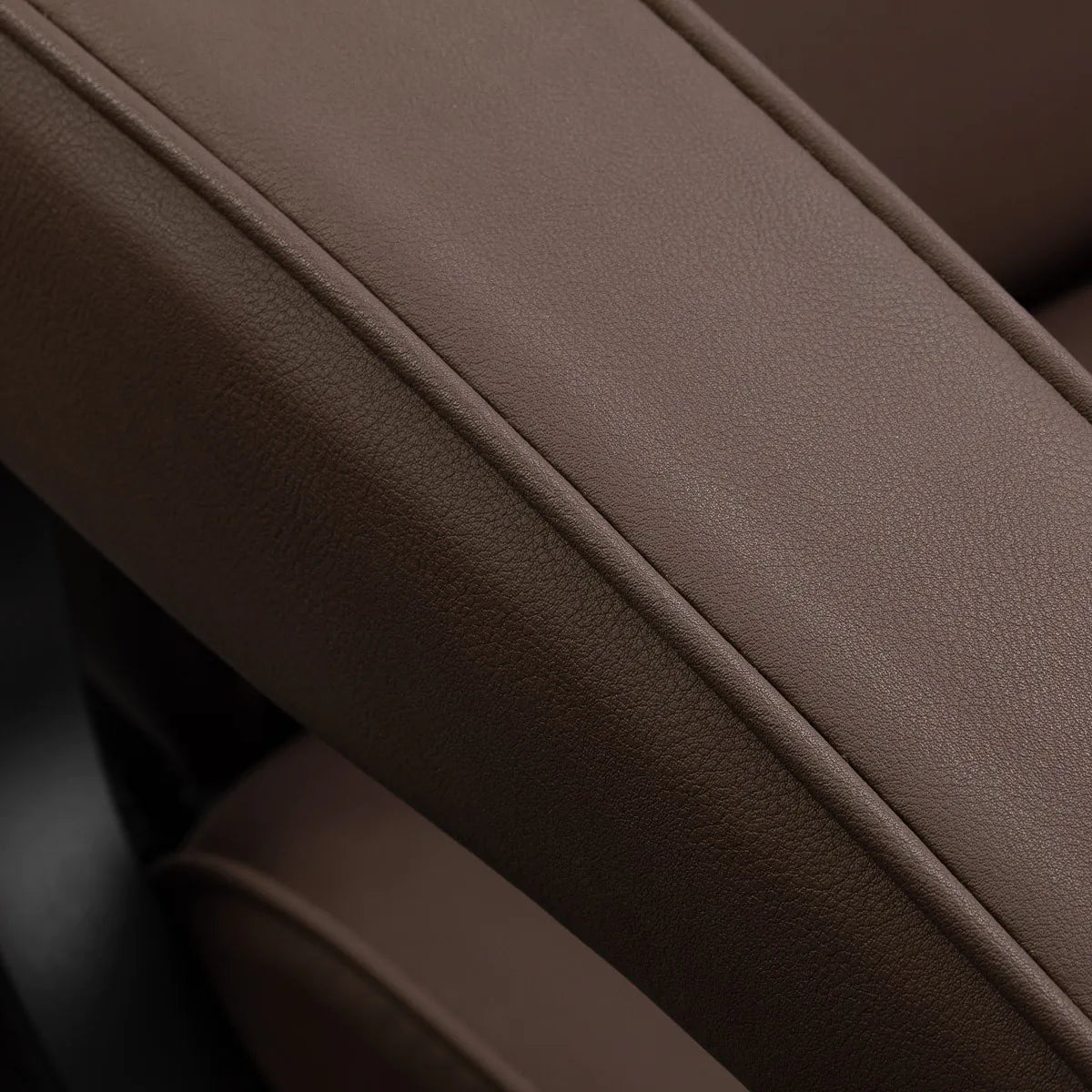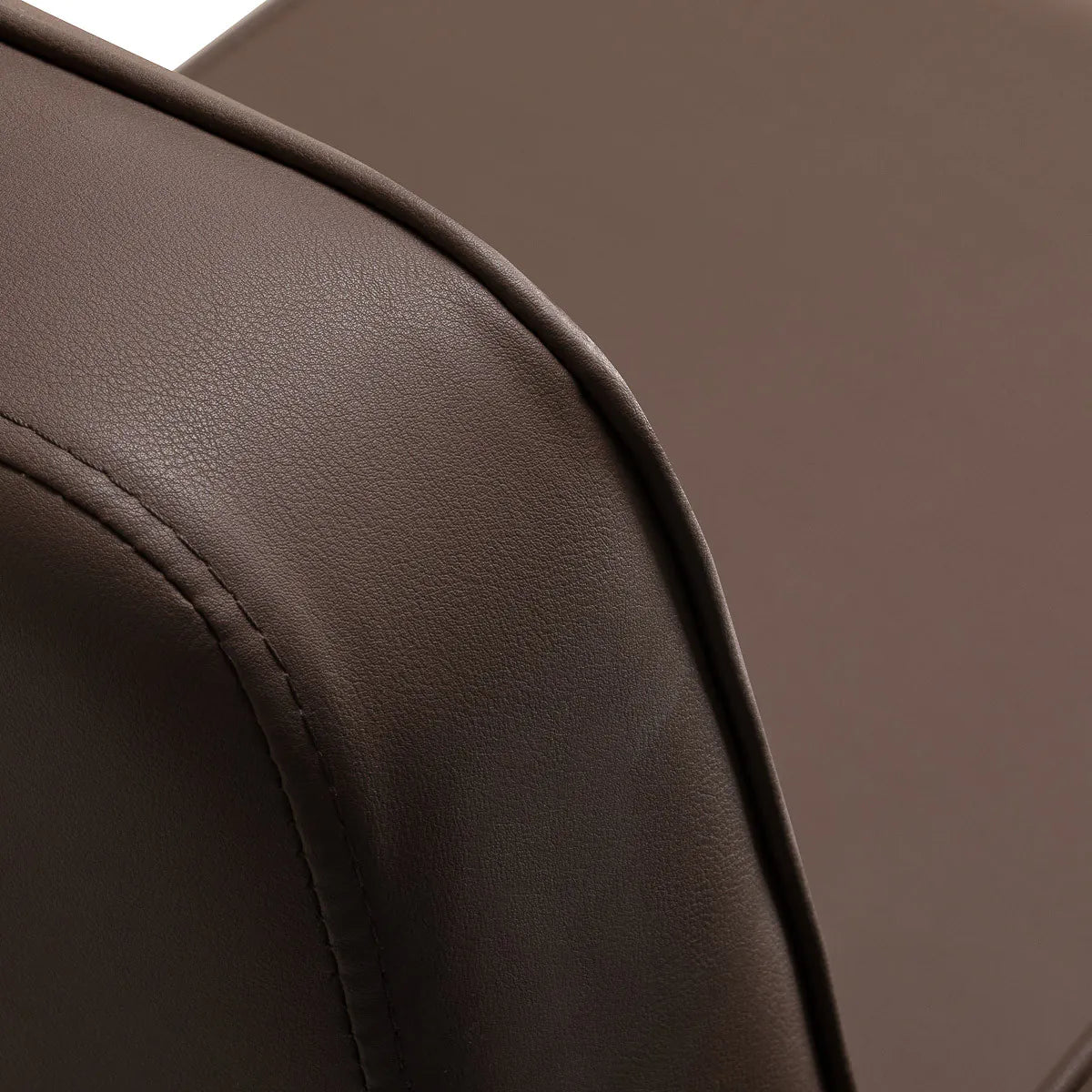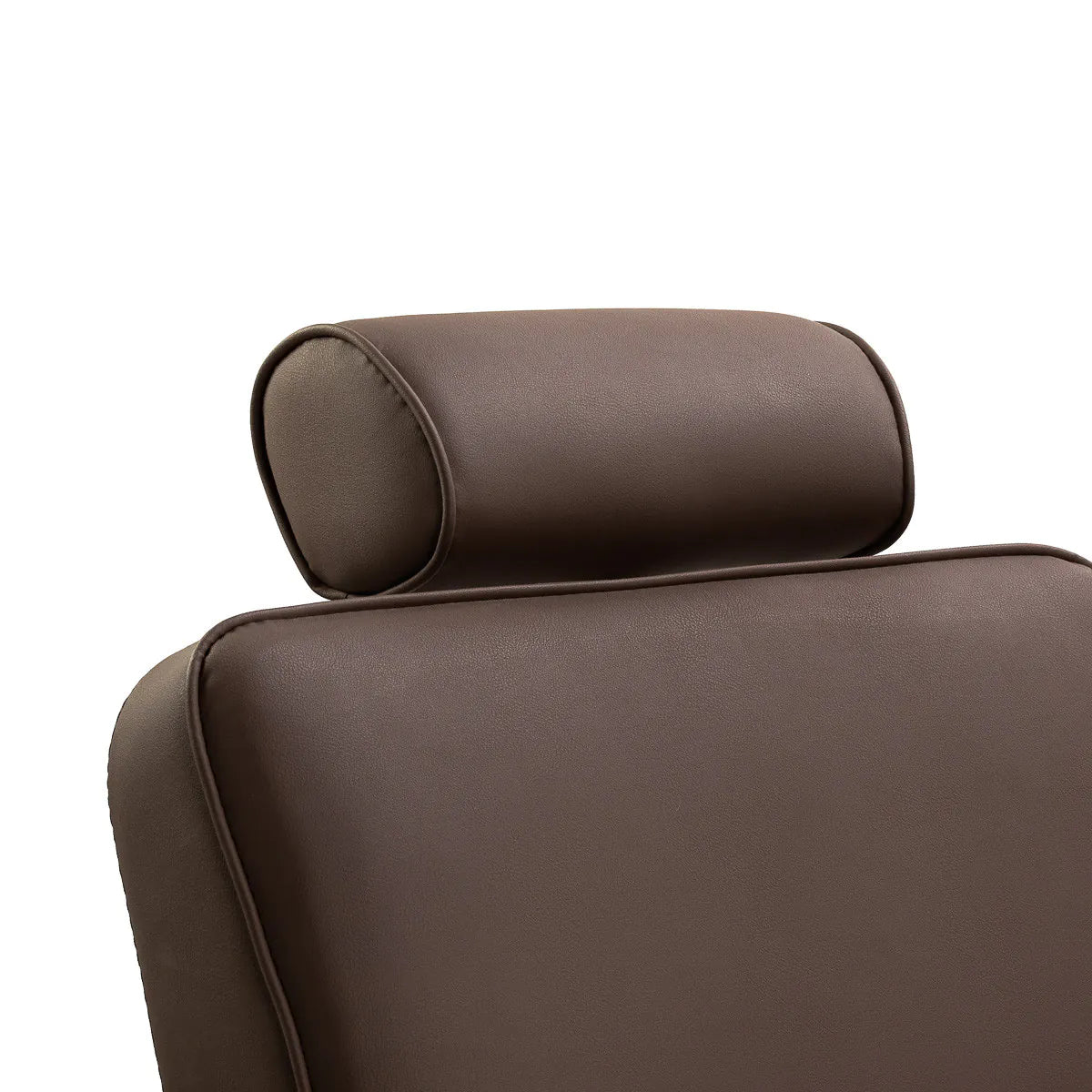 The solid construction of the base ensures stability and high comfort. The seat is filled with deformation-resistant foam and upholstered with soft, matt synthetic leather, combining durability with comfort. The materials used for the finish are moisture-resistant, durable and easy to clean, making the chair perfect for everyday use. Stylish stitching and upholstery in shades of brown give it a unique character, blending perfectly with the décor of modern barbershops.