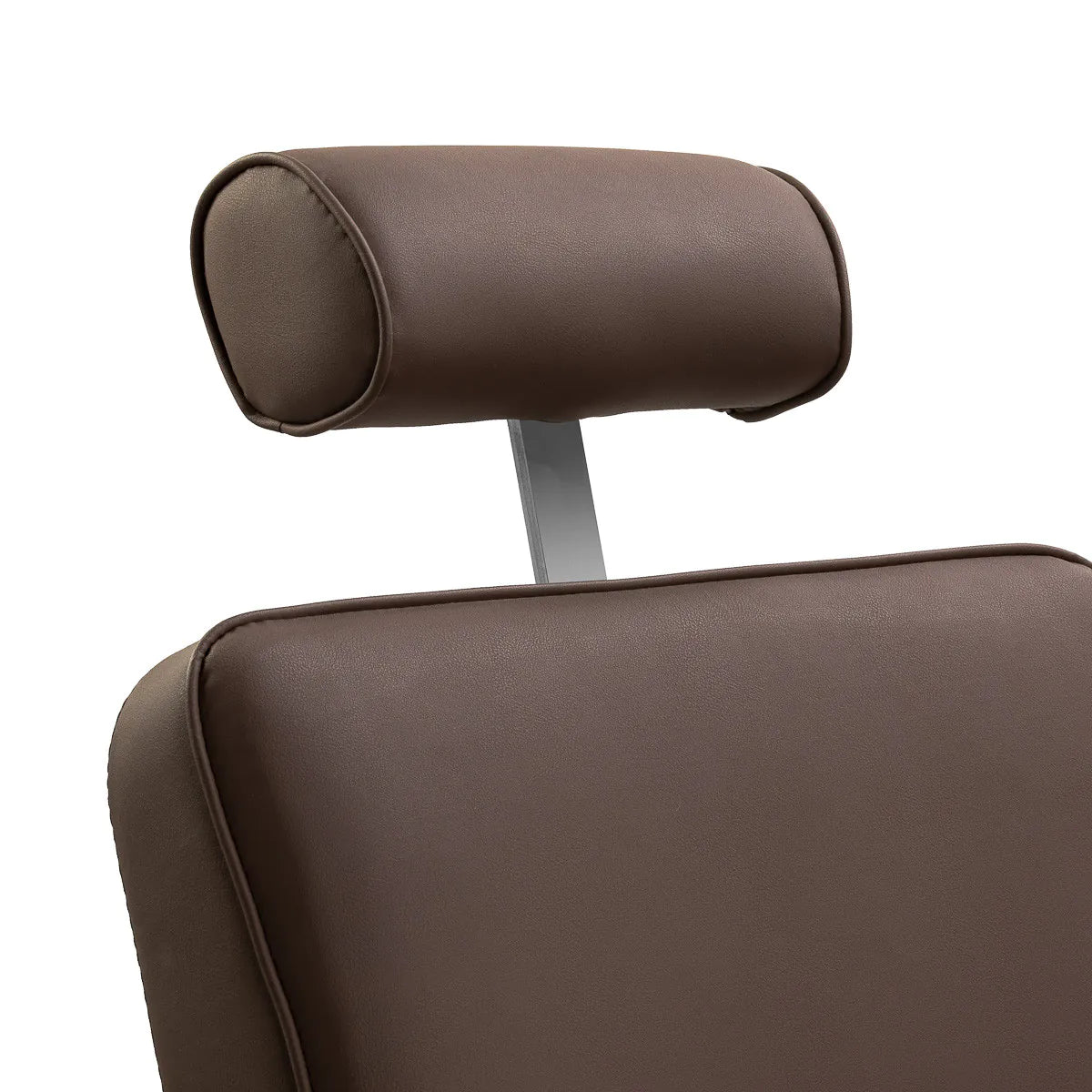 A powerful hydraulic lift allows the seat height to be freely adjustable between 55 and 72 cm, even when the client is already seated in the chair. This allows the chair to be ergonomically adapted to the client's height and the practitioner's preferences. The reclining backrest and adjustable footrest allow the client to be placed in a comfortable, semi-reclining position for easy access during more precise services. Additional support is provided by the extendable headrest, ensuring stable head support.