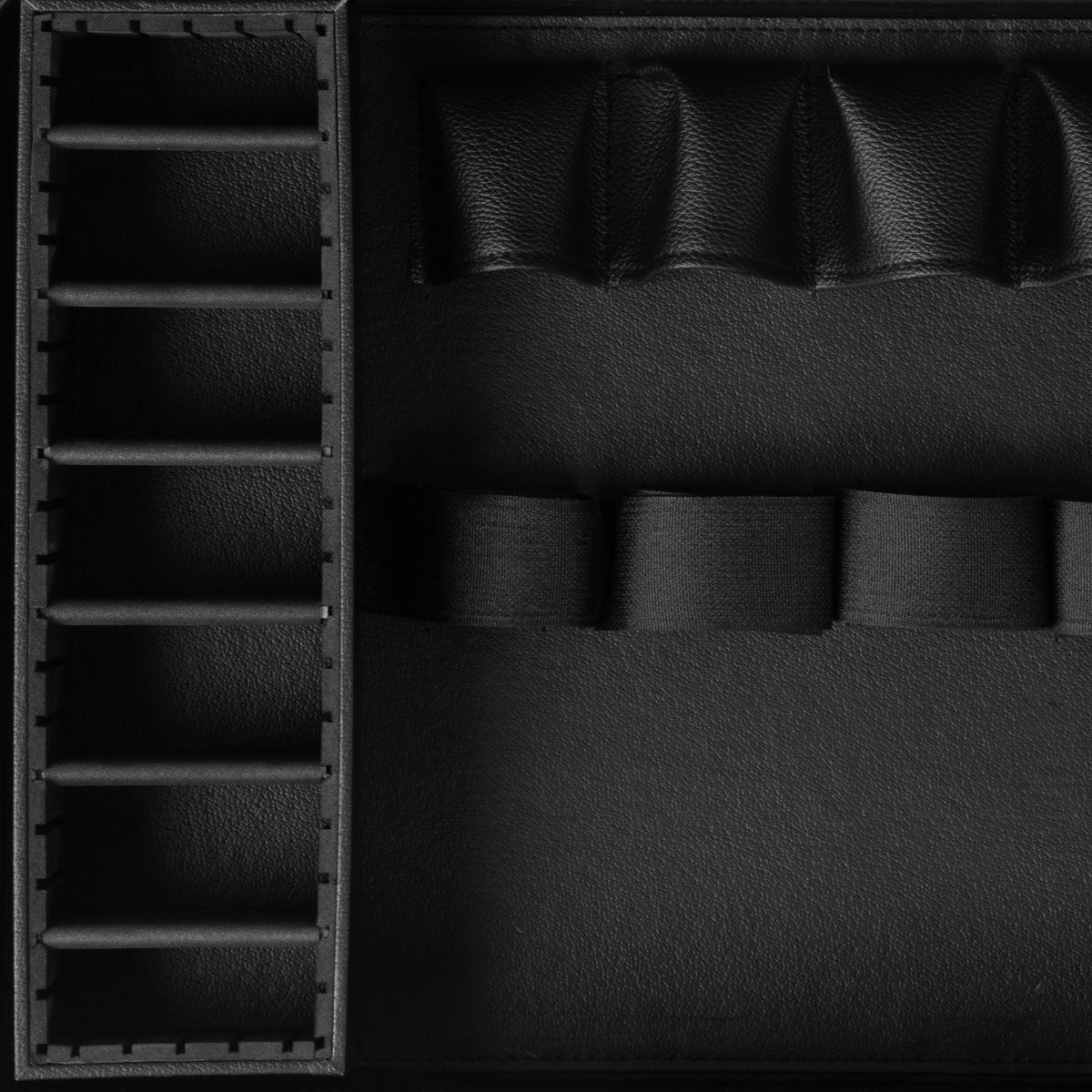 Aluminum hairdressing suitcase with double combination lock and comfortable handle. The suitcase will accommodate various hairdressing accessories and tools - scissors, combs, hair brushes, hair dryer, hair clippers, etc. The suitcase comes with a detachable shoulder strap.