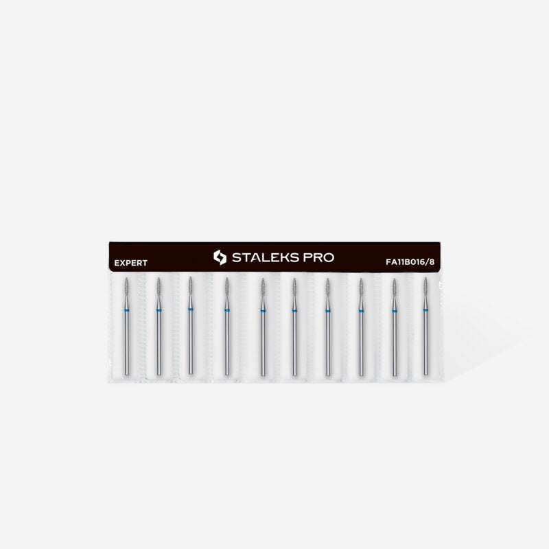 Diamond nail drill bit pointed flame blue EXPERT head diameter 1,6 mm / working part 8 mm - STALEKS