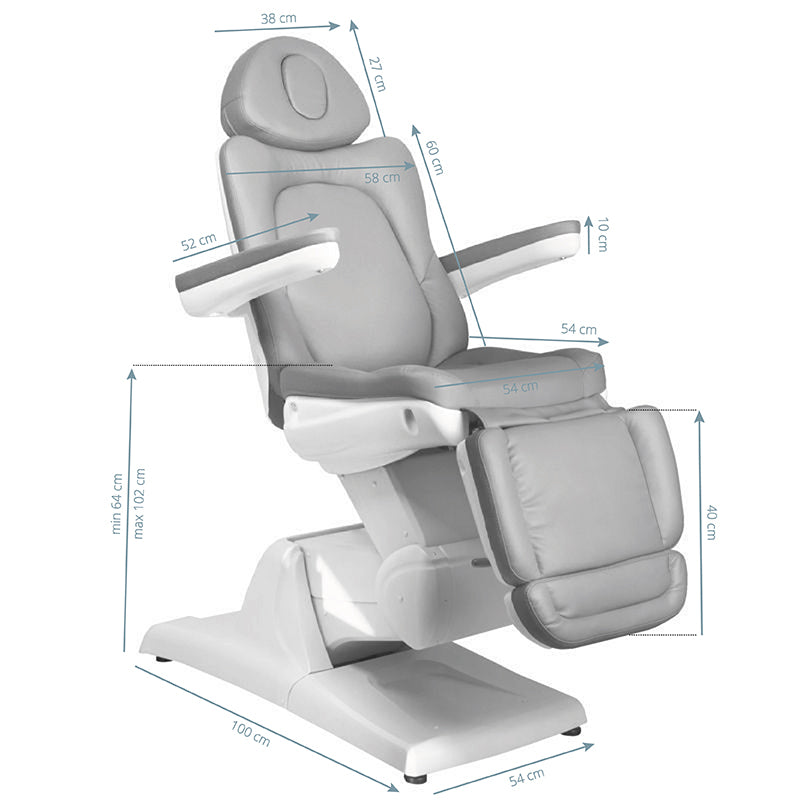 A modern, electrically adjustable cosmetic chair, ensuring comfort during the procedure not only for patients, but also for those performing the procedure.