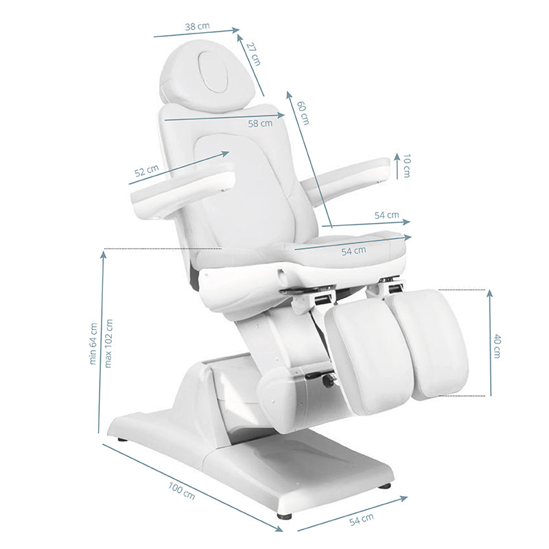 A modern, electrically adjustable beauty chair that ensures comfort during the treatment. only to patients, but also to people performing the procedure.