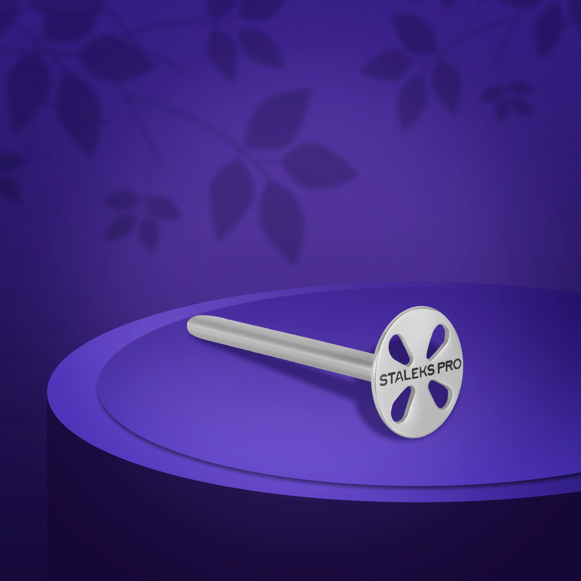 Metal pedicure discPODODISC STALEKS PRO XS with elongatedleg. Allows you to perform high-quality and safe pedicures, minimizing the possibility of infection. Reduces the time of the pedicure procedure. Size XS - diameter of the working part 10 mm. Used in working with disposable files. Allow using different abrasives files. Extended length of the leg 37 mm allows the use of the disk in devices with a vacuum cleaner. Lightweight version of the metal base with drop-like holes: does not overheat, has less weight. The matte surface of the disc is scratch resistant. The surface of the disc has a more secure attachment with disposable adhesive files due to the even and slightly rough surface. The small size of the disc is convenient for working in hard-to-reach places: opening cracks, removing interdigital calluses, treating the skin on the fingers. It can be used to shape the free edge of the nail and remove the coating from the nail plate. Made of high-quality stainless steel. Resistant to sterilization in a dry heat oven and autoclave. Can be subject to disinfection with special agents. Designed for hardware pedicure. Depending on the size of the disc, set the speed: XS, S - 10,000 - 30,000 rpm.Key features