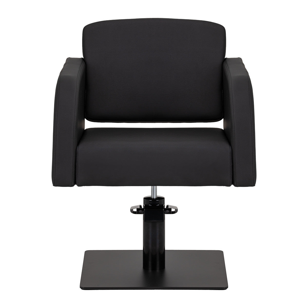 The Gabbiano Elda hairdressing chair combines minimalist design with functionality and everyday comfort. Streamlined lines give it a light and modern character, while the stable, square base in matte black further emphasises its style. The soft foam filling combined with soft-touch synthetic leather in shades of black ensures comfort even during long treatments. Carefully selected materials ensure durability, moisture resistance, and ease of cleaning. The chair fits perfectly into both modern and classic interiors, emphasising the professional character of the salon.