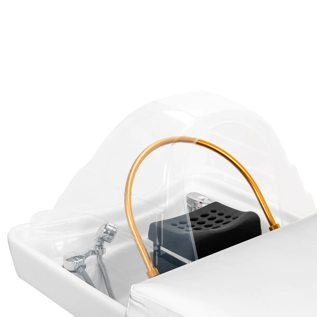 A special arch with an adjustable inclination creates a waterfall effect that intensively cleanses the scalp and acts as a natural massage, improving blood circulation, reducing tension and stress. Precisely controlled water flow promotes hair regeneration and intensely moisturises the skin. The adjustable waterfall provides a deep cleansing of the scalp and relaxation, providing relief from ailments such as headaches and neck stiffness. Thanks to an intelligent closed-loop system, the arch draws water from the basin and reuses it, providing a continuous water massage.