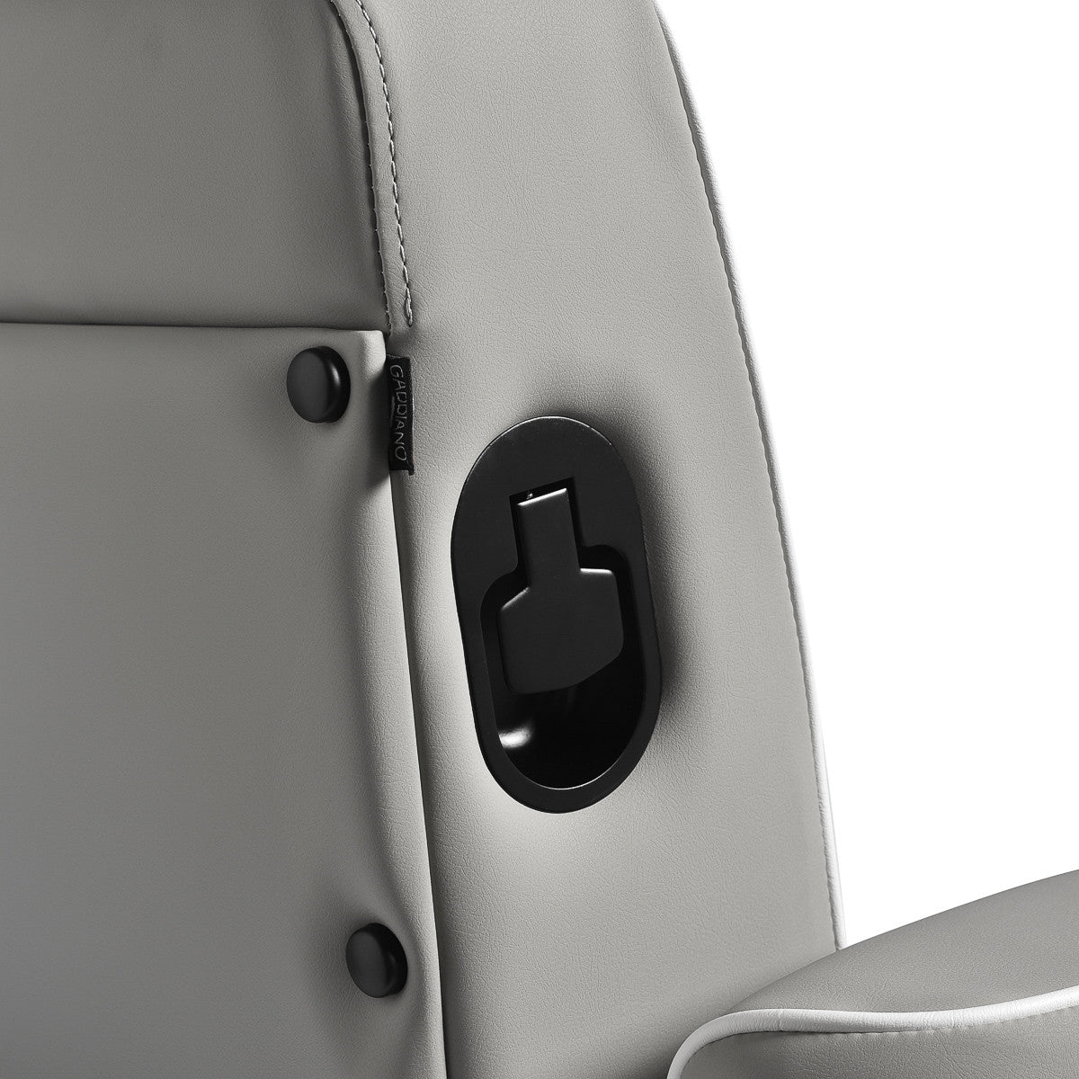 The Gabbiano Levi barber chair combines style with functionality. Equipped with a solid hydraulic lift, adjustable backrest, footrest, and extendable headrest, it allows for a customizable positioning to suit the type of treatment being performed. This ensures maximum comfort for both the client and the person performing the service. Carefully crafted details, vertical upholstery stitching and elegant finishes make the chair a eye-catching addition to any barbershop.