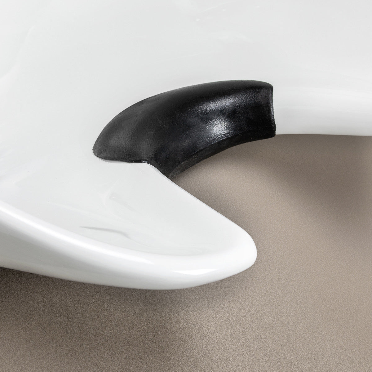 The depth of the ceramic washbasin bowl in shades of white allows for comfortable and efficient performance of a wide range of hairdressing services, preventing excessive splashing of water and products used during the treatment. The material used makes the washbasin durable, resistant to discoloration and scratches, and very easy to keep clean. The appropriately profiled collar and inclined backrest provide support and comfort while washing hair, and thanks to the comfortable plastic overlay in shades of black, the client will not feel discomfort from the cold ceramic surface.