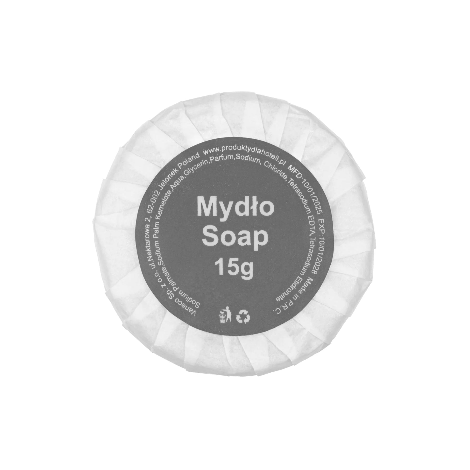 Hotel Soap Grey 15g is a product that will find application in every hotel, guesthouse or apartment. It can be used in guest bathrooms, as well as in spas, swimming pools or gyms. Thanks to carefully selected ingredients, this soap not only perfectly cleanses the skin, but also provides it with delicate hydration and nourishment. The convenient 15g format makes it an ideal travel companion, a great solution for guests who value practicality and comfort.