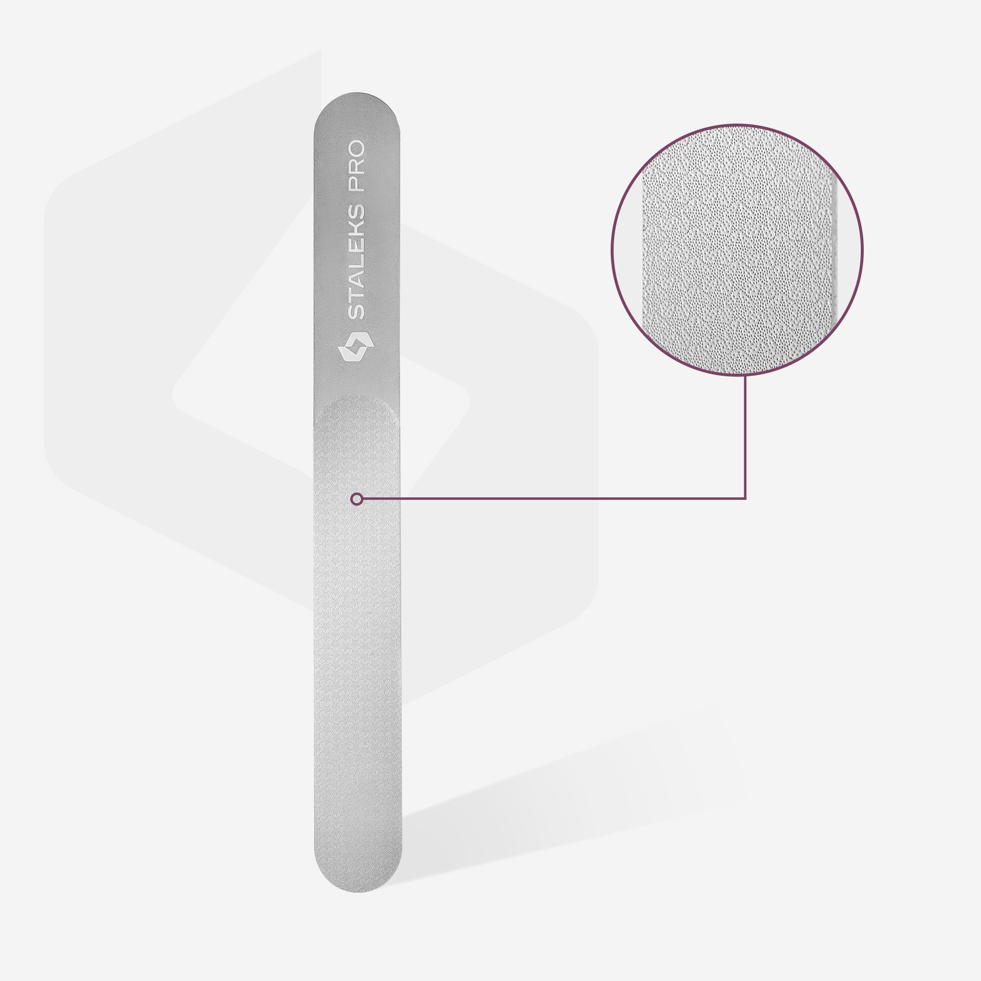 Laser nail file. Wide straight shape with handle. Polished handle for comfortable fixation of the tool in the hand. Two degrees of hardness - medium and soft. The rounded end of the abrasive part allows you to easily reach the most inaccessible areas and process nail folds without injuring the delicate skin around the nail. Allows you to carefully change the shape of natural nails without damaging the plate and without forming microcracks in it. The use of this nail file stops the process of delamination due to the effect of "soldering" the edge of the nail plate. Allow working in different directions. Designed to correct the nail plate, as well as remove rough skin from the lateral nail folds. For manicures and pedicures. Stainless steel. Can be disinfected and sterilized in dry heats ovens and autoclave multiply. Long service life. Size 165*18 mm.Key features