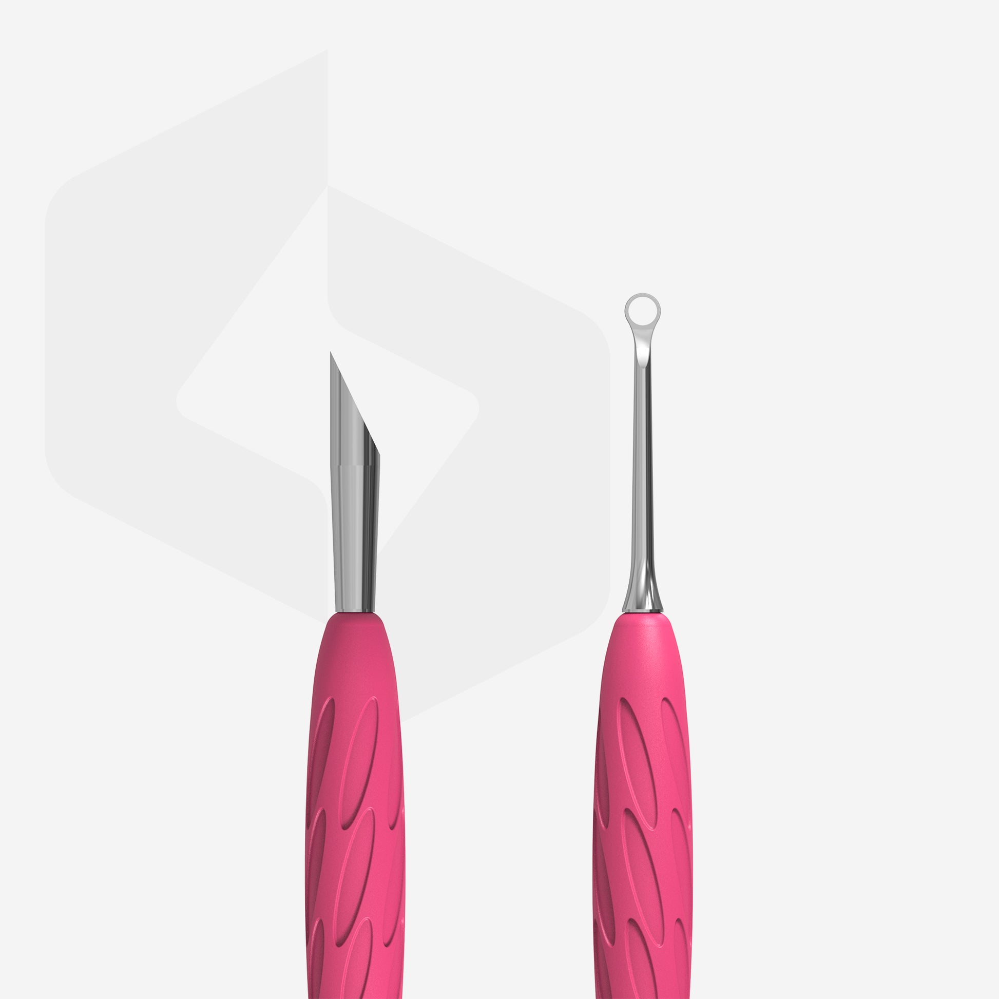 Manicure pusher Gummy with silicone handle UNIQ 11 TYPE 2 (beveled and loop pusher) - STALEKS