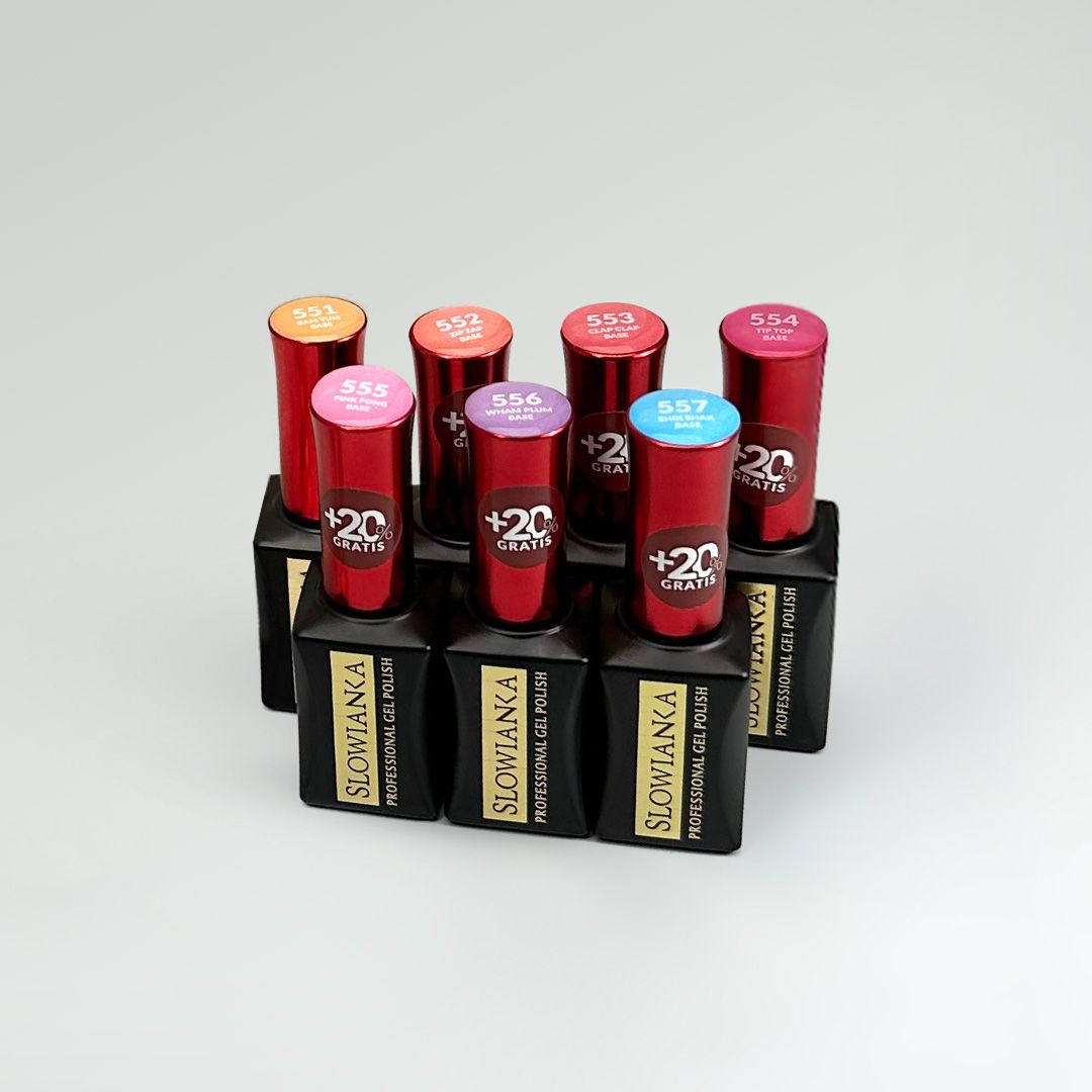 The Pastel Muffin Cover Base Line collection from Slowianka Nail Trends is a line of intensely pigmented 2-in-1 hybrid bases - acting as both base and colour. Each shade is a pastel-neon proposal, ideal for spring-summer styling - from banana yellow to watermelon pink and cool blue. The bases are perfectly levelled, do not flood the cuticles and allow precise building of the nail shape. Thanks to their high durability and convenient application, they are suitable for both everyday salon work and quick seasonal styling. The colours of the bases correspond to the shades of the hybrid varnishes from the Pastel Muffin range, which allows for the creation of consistent and effective manicures. It is a collection created for stylists who value convenience, modern design and a perfect effect in a short time.