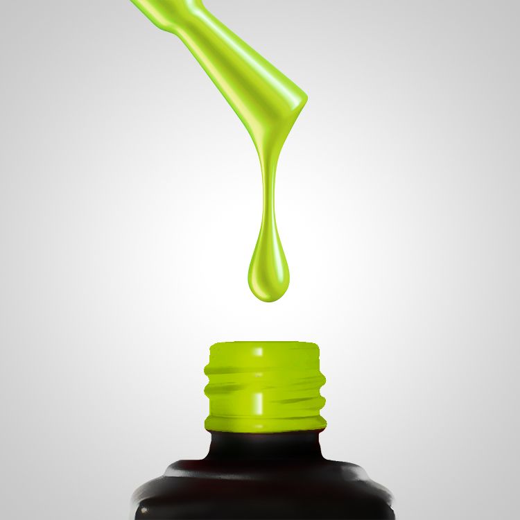 UV gel polish of medium thick, creamy consistency that levels and spreads on the nail without creating streaks.