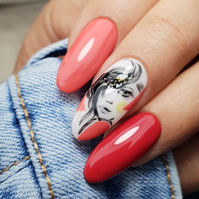 Scoop the right amount of the product on the brush (needed for a specific element of decoration) and apply it to the nail by creating a pattern.