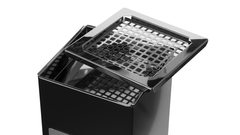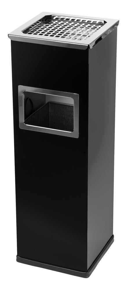 Color: black Material: stainless steel Volume: 22 l Dimensions (w × d × h): 220×220×690 mm Inner container: yes Upper frame: yes Basket type: with ashtray Use: free standing