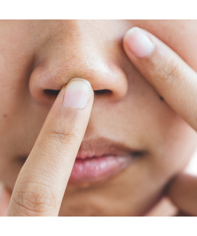 Po navlhčení vodou stran nosu, nosu a brady naneste malé množství přípravku Blackhead Stop a několik minut masírujte.