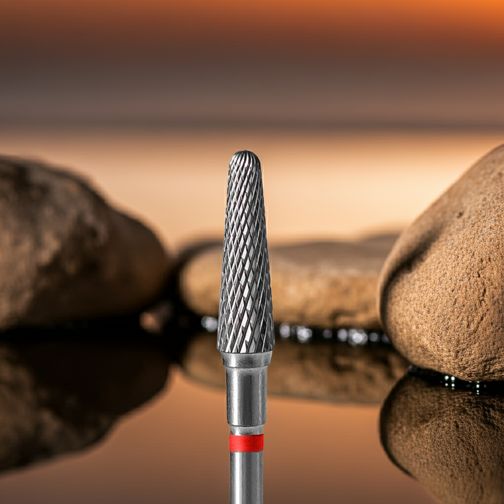 Karbidová tryska pro hardwarovou manikúru/pedikúru.Červený zářez měkké tvrdosti.Tvar "borovicové šišky" pro korekci umělých nehtů, odstranění gel laku a tvrdých povlaků.Je nezbytné dodržet doporučené požadavky na otáčky; použití při vyšších otáčkách může mít za následek zranění klienta.Při manikúře:Korekce prodloužených nehtů.Příprava na prodloužení umělých nehtů.Korekce nehtové ploténky.Úhledně řeže materiál a zanechává rovný povrch.V procesu práce , materiál se odstraňuje ve formě drobných třísek, nikoli jako prach.V pedikúře/podologii:Zpracování zrohovatělých kožních partií.Zpracování kuří oka a mozolů.Vysoká kvalita kov.Lze podrobit všem typům sterilizace a dezinfekce.Odolný proti korozi.Klíčové vlastnosti