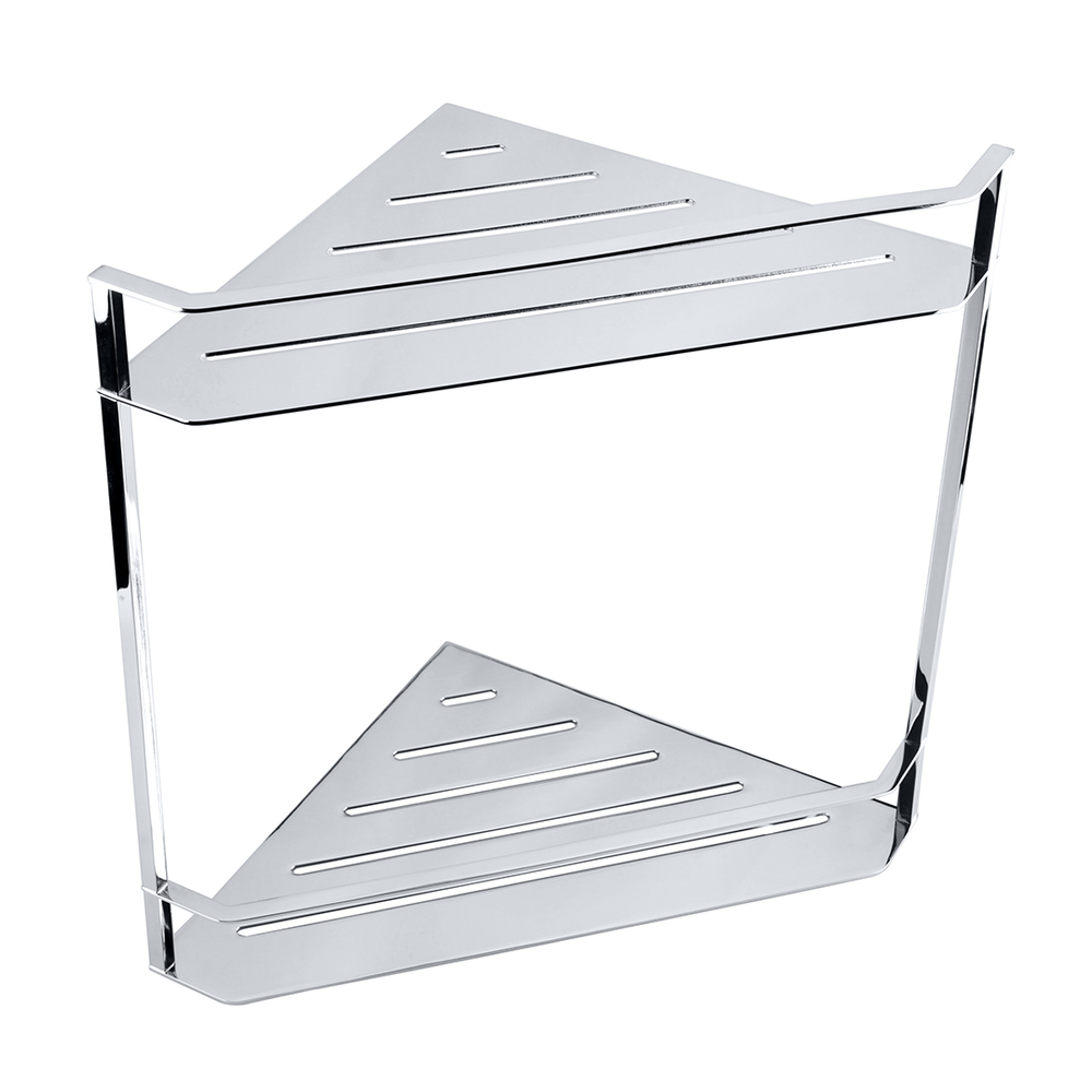 Výrobek: sprchová police Barva: stříbrná Povrchová úprava: chrom Materiál: nerez Výška: 365 mm Šířka: 340 mm Hloubka: 205 mm Hmotnost: 1,80 kg Použití: na stěnu