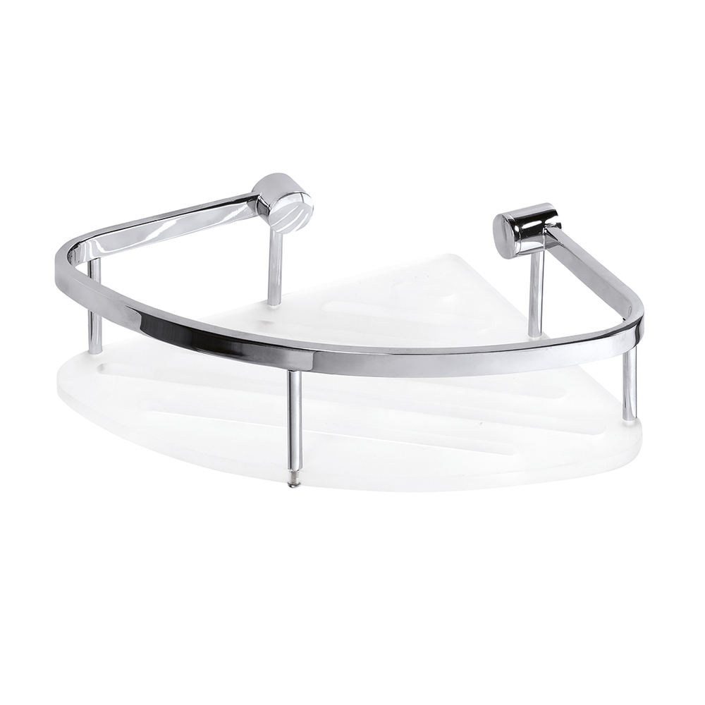Výrobek: sprchová police Barva: stříbrná/bílá Povrchová úprava: chromovaný Materiál: mosaz/mléčný akryl Výška: 75 mm Šířka: 260 mm Hloubka: 195 mm Hmotnost: 0,55 kg Použití: na stěnu