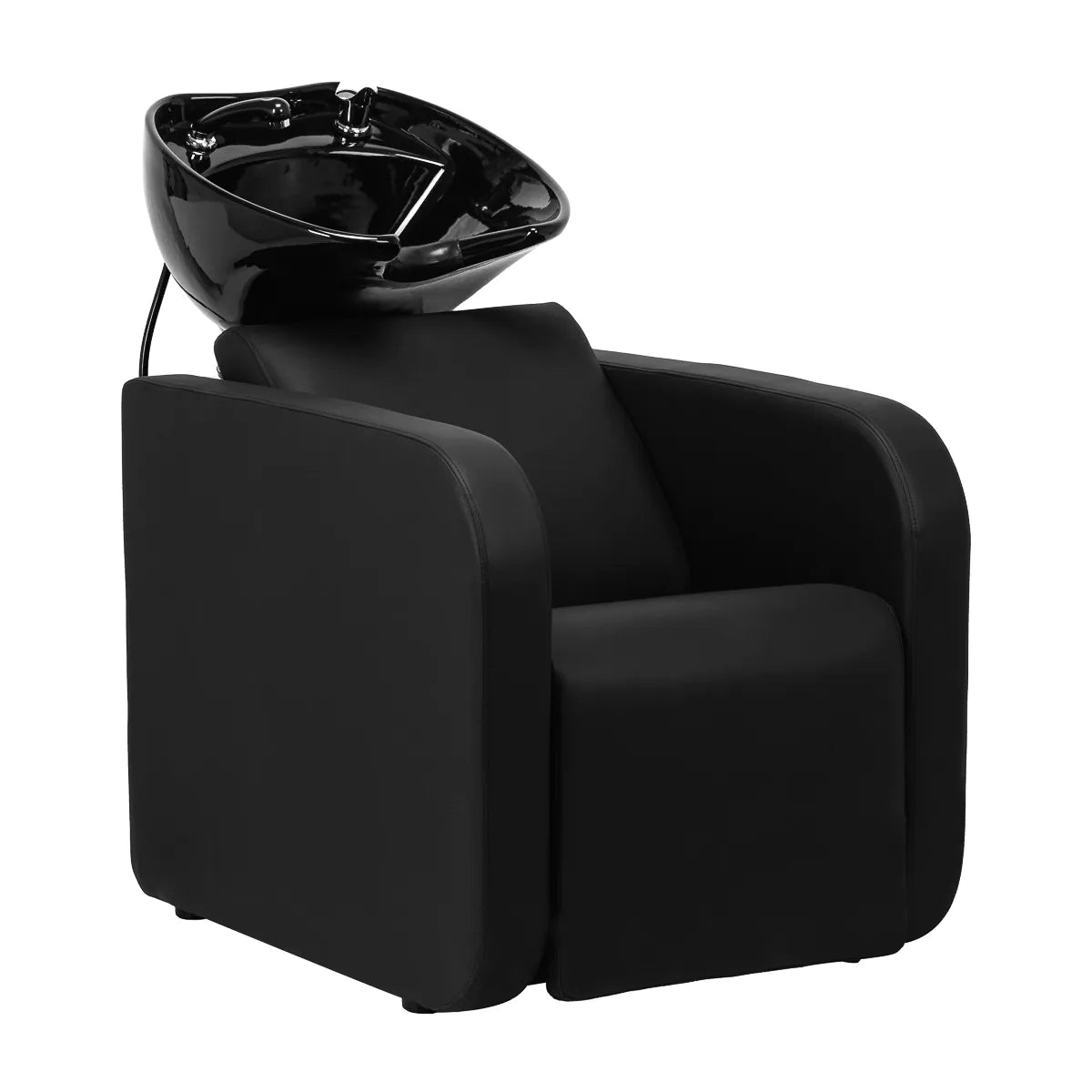Hloubka keramické umyvadlové mísy v odstínech černé umožňuje pohodlné a efektivní provádění široké škály kadeřnických služeb , zabraňuje nadměrnému stříkání vody a produktů používaných během ošetření. Použitý materiál činí umyvadlo odolný, odolný vůči změně barvy a poškrábání a velmi snadno se udržuje v čistotě. Vhodně profilovaný límec a nakloněná opěrka zad poskytují oporu a pohodlí při mytí vlasů a díky Pohodlný plastový povrch v odstínech černé , klient nebude pociťovat nepohodlí ze studeného keramického povrchu.