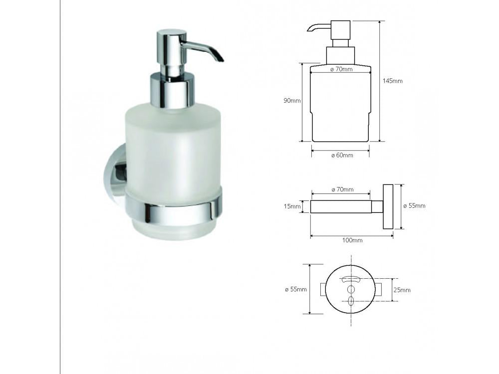 Produktová řada: MODERN Barva: stříbrná Povrchová úprava: chrom / mléčné sklo Materiál: mosaz, sklo Výška: 145 mm Šířka: 75 mm Hloubka: 100 mm Hmotnost: 0,50 kg Objem: 200 ml Použití: na stěnu