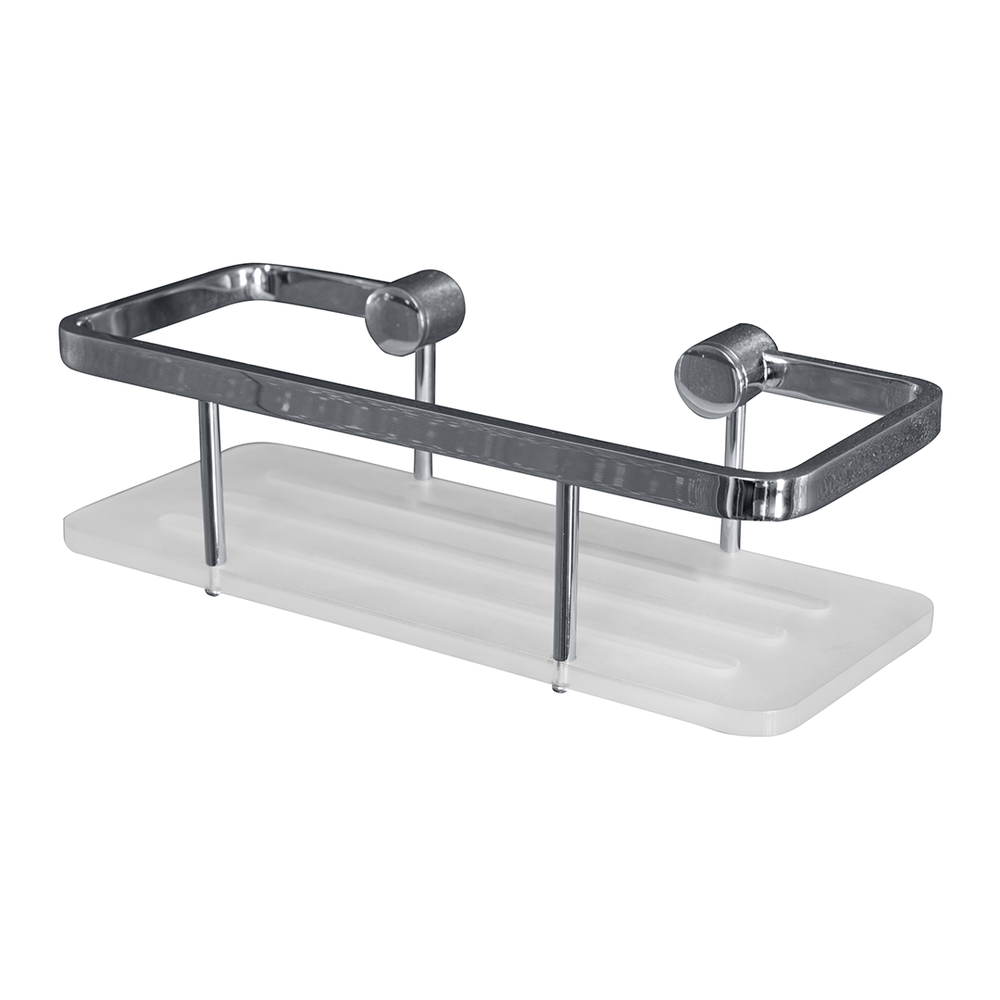 Výrobek: sprchová police Barva: stříbrná/bílá Povrchová úprava: chromovaný Materiál: mosaz/mléčný akryl Výška: 75 mm Šířka: 250 mm Hloubka: 110 mm Hmotnost: 0,55 kg Použití: na stěnu