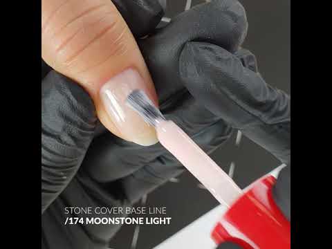 Stone Cover Base Moonstone Light 174 je přípravek s poměrně řídkou konzistencí, ale s 80% krytím. Má krásnou, perleťově béžovo-růžovou barvu. Má dvě funkce - báze a gelový lak na nehty. Manikérka může použít Moonstone jako jediný gel nebo v kombinaci s hustou bází. Moonstone posiluje nehty, je tvrdý a odolný.