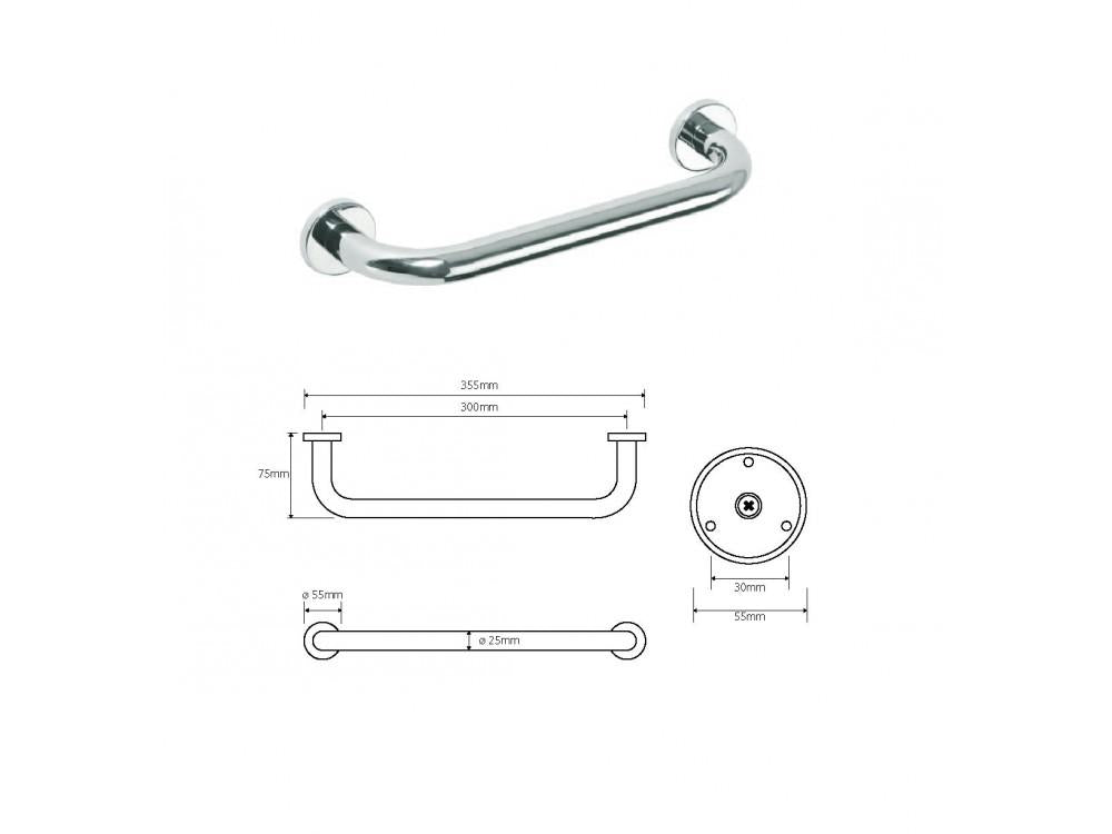 Produktová řada: MODERN Barva: stříbrná Povrchová úprava: pochromováno Materiál: mosaz Výška: 55 mm Šířka: 355 mm Hloubka: 75 mm Hmotnost: 0,40 kg Použití: na stěnu Poznámka: pevnost