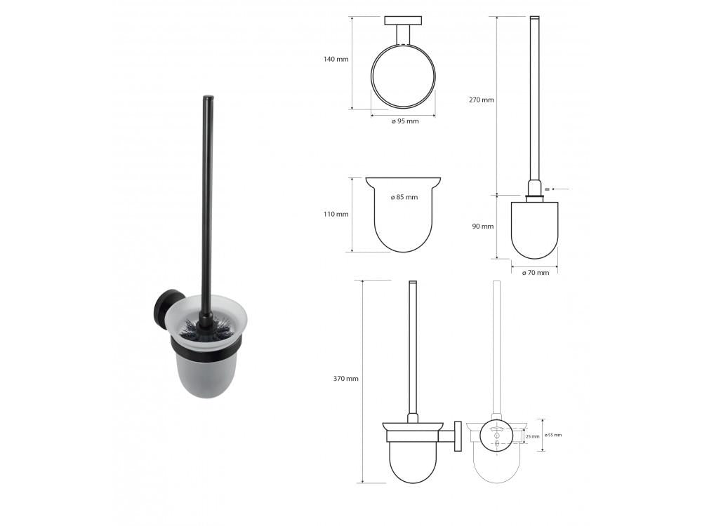 WC kartáč na zavěšení NERO, sklo, černý kartáč