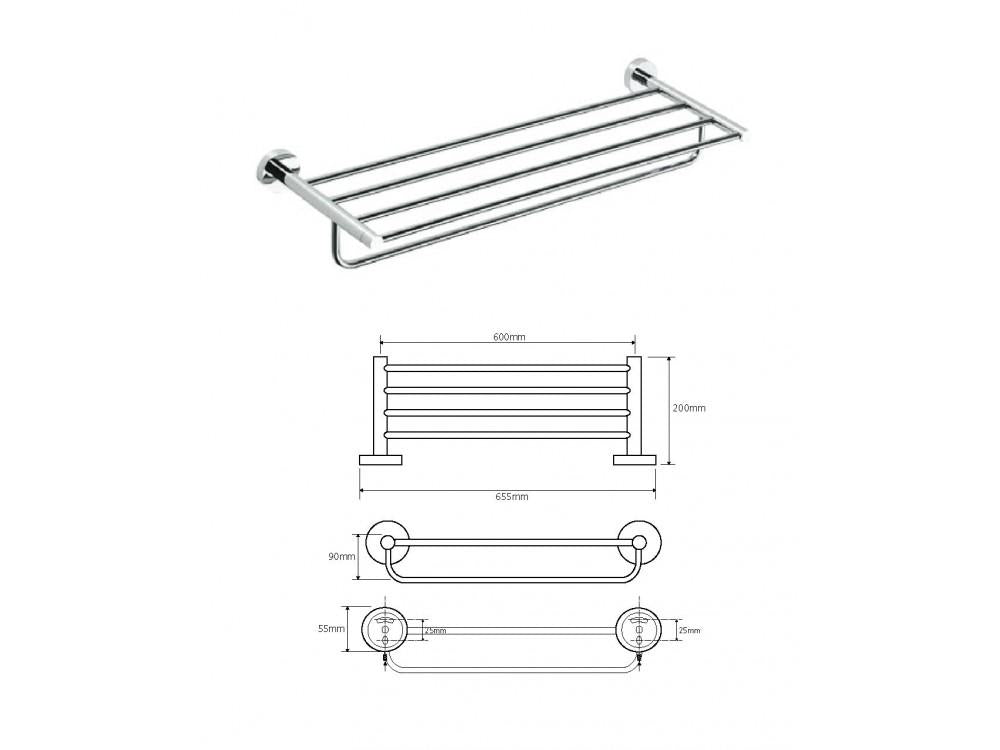 Věšák na ručníky se závěsem MODERN A, 655 mm