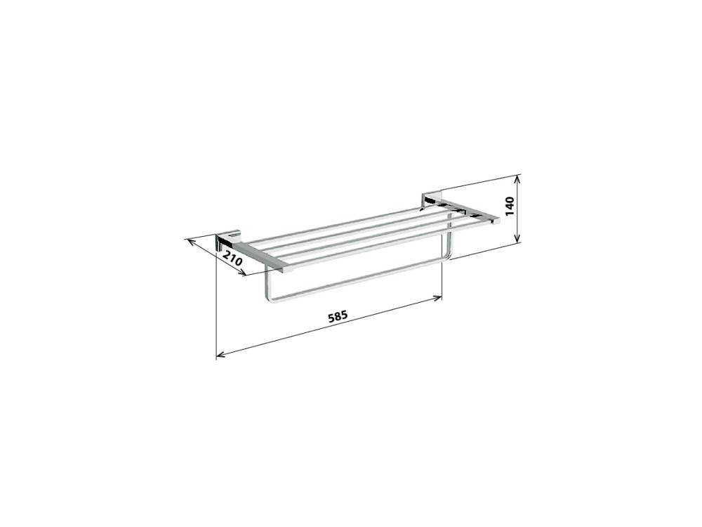 Produktová řada: SQUARE Barva: stříbrná Povrchová úprava: pochromováno Materiál: mosaz Výška: 140 mm Šířka: 585 mm Hloubka: 210 mm Hmotnost: 0,79 kg Použití: na stěnu