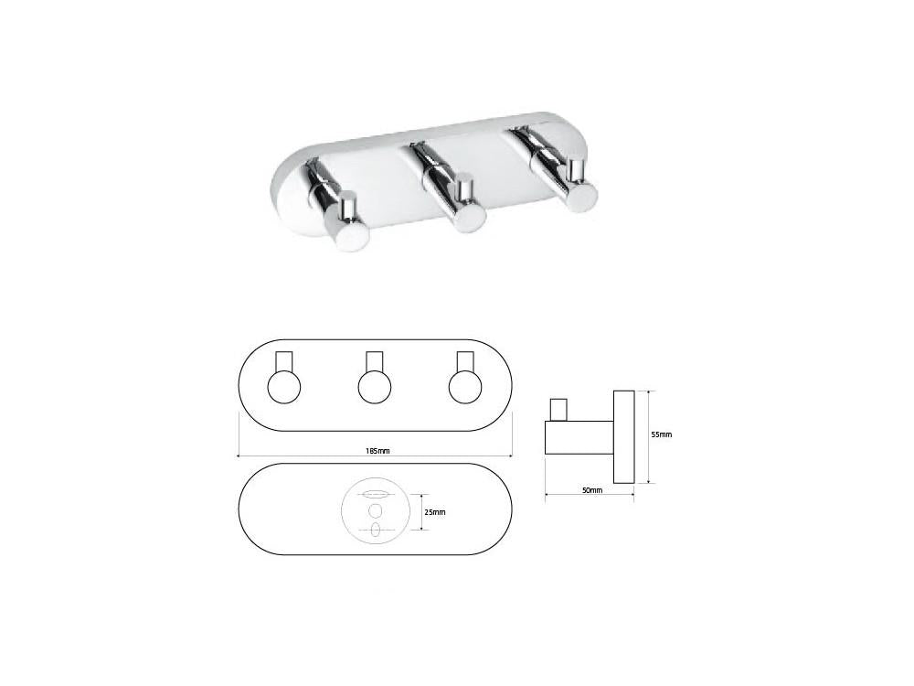 Produktová řada: MODERN Barva: stříbrná Povrchová úprava: chromovaný Materiál: mosaz Výška: 55 mm Šířka: 185 mm Hloubka: 50 mm Hmotnost: 0,47 kg Použití: na stěnu