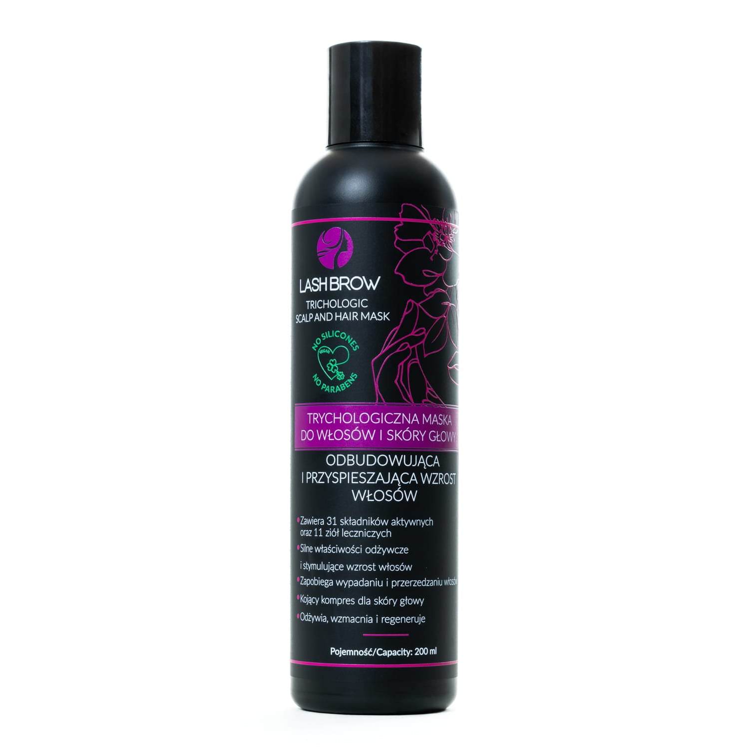 Objevte trichologickou masku na vlasy a pokožku hlavy – inovativní produkt, který poskytuje komplexní péči, regeneraci a urychluje růst vlasů. Naše pokročilé složení obsahuje unikátní směs 31 aktivních složek a 11 léčivých bylin, které působí na vlasy i pokožku hlavy a poskytují hloubkovou hydrataci a regeneraci od kořínků ke konečkům.