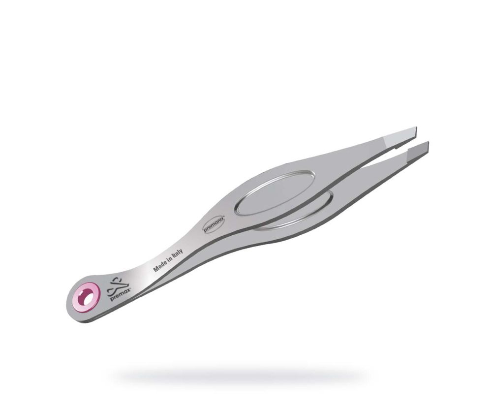 Pinzeta se zkosenými hroty - RingLockSystem - dámská - velikost 9,5 cm. - nerezová ocel - pískovaná - VYROBENO V ITÁLII - ZNAČKA KVALITY PREMANA, ideální pro přesné odstranění nežádoucího chloupku na těle, nerezová ocel, pískovaná - zkosené hroty, 3 3/4"-cm. 9,5, vyrobeno v Itálii