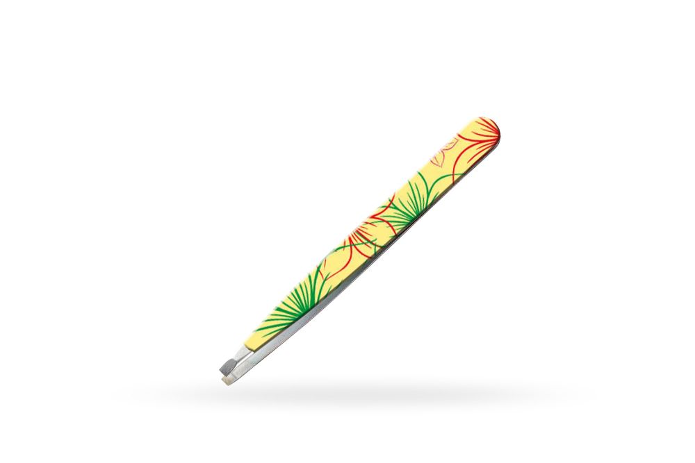 Pinzeta se zkosenou špičkou - řada OPTIMA - kolekce COLORS - V40180090FG - uhlíková ocel C50 - matný nikl + chrom - žlutý květinový vzor - 9 cm - 3 1/2" - vyrobeno v Itálii