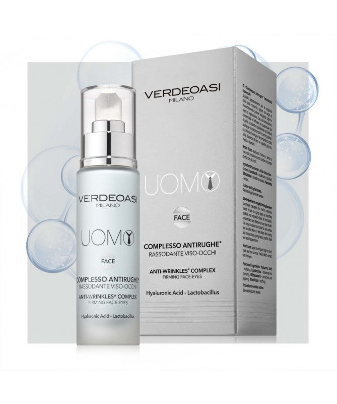 UOMO - PROTI VRÁSKÁM* KOMPLEXNÍ ZPĚŇUJÍCÍ OBLIČEJ A OČI - Kyselina hyaluronová - Lactobacillus* Působí proti vráskám