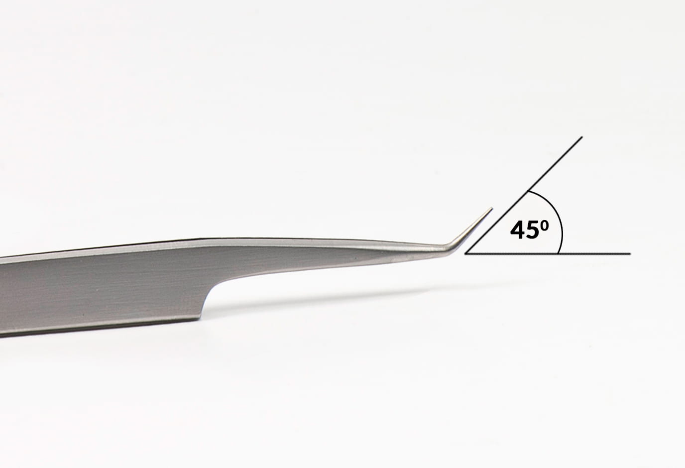 Profesionální pinzeta pro prodlužování řas metodou Volume. Dokonalý kontaktní povrch vytvoří perfektní vějíře. Byla navržena speciálně pro ultratenké řasy. Dokonale vyvážená a kalibrovaná. Pinzeta ohnutá pod úhlem 45°.